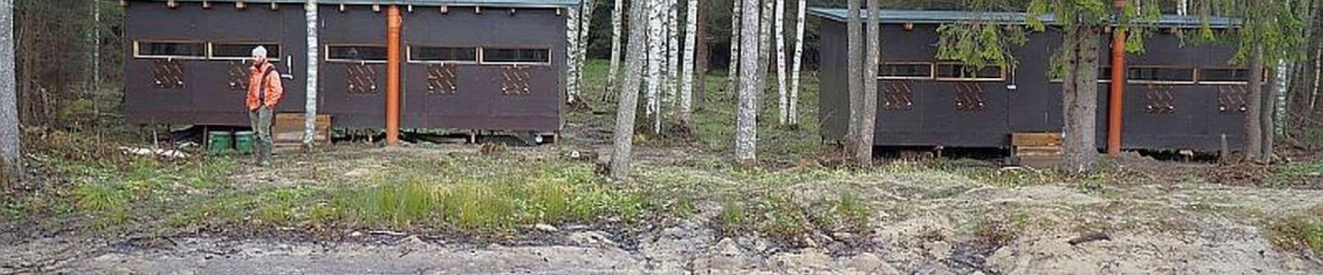Die besondere Konstruktion der Häuser ermöglicht Aussichten auf zwei Seiten, in zwei ganz verschiedene sehr reizvolle Landschaften: Aus den nördlichen Hüttenfenstern geht der Blick in einen dichten Taiga-Wald aus Birken und Fichten. Hier sind Bären und Marderhunde auf kurzen Distanzen zu sehen. Verschiedene Vogelarten besuchen eigens für sie errichtete Futterplätze.