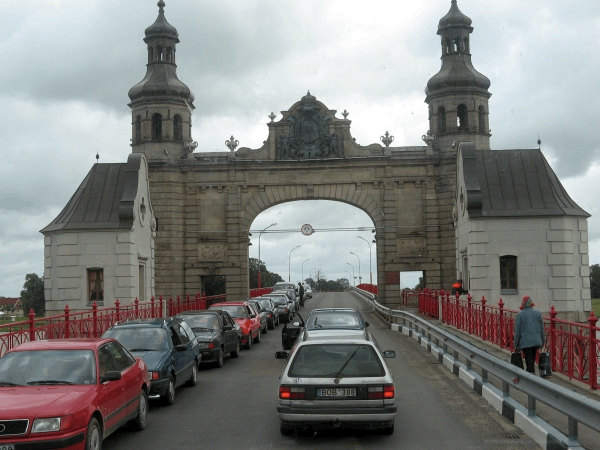 Weiterfahrt parallel zum Fluss Nemunas (dem Memelstrom) vorbei an Juknaiciai (Jugnaten), das man zu sowjetischer Zeit zu einem Musterdorf entwickeln wollte, und Pagegiai (Pogegen) über die Memelbrücke zum litauisch-russischen Grenzübergang nach Sovetsk (Tilsit). Übernachtung in Tilsit.