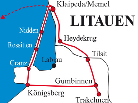 Höhepunkte der Reise: Memelland - Tilsit - Gumbinnen - Rominter Heide - Königsberg - Samlandküste - Kurische Nehrung